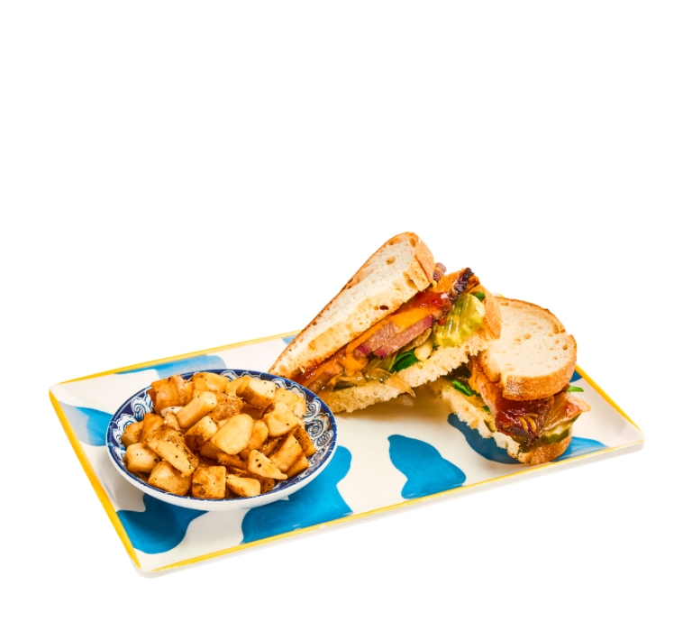 fried green tomatoes, bacon, spinach, smashed avocado and ranch on wheatberry bread served with side of home fries or grits