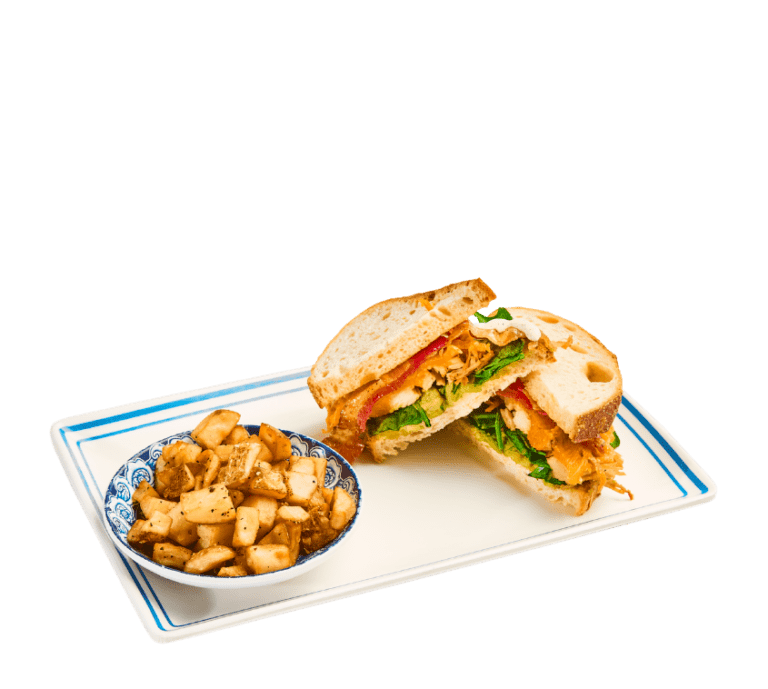 seasoned turkey, bacon, cheddar, spinach, smashed avocado and ranch on wheatberry bread served with side of home fries or grits